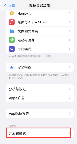 2、进入后可以在【安全性】选项下方看到【开发者模式】。